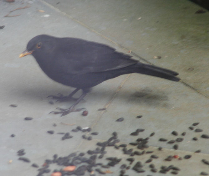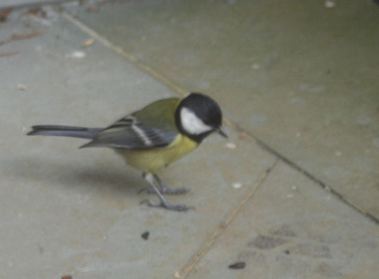 op de stoep, zaden en pinda's aan het verzamelen voor de winter
