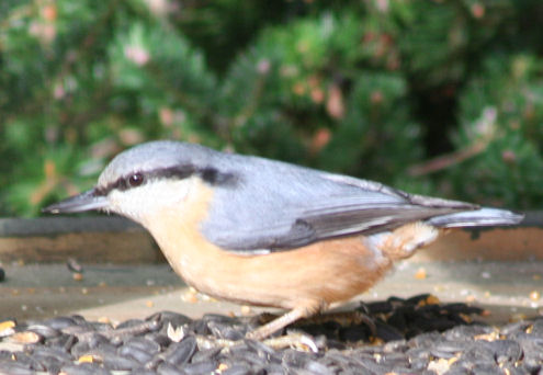 op de stoep, zaden en pinda's aan het verzamelen voor de winter